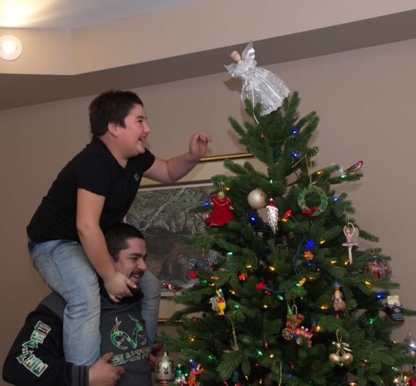 There were several Powell gatherings around Christmas. Travis, Victoria and Adam came on December 8th to make cookies and decorate the tree, including the all-important “spearing the Christmas Angel” ceremony. David attended Bruce’s party on Dec 16th (see photos) as Anna was working and Mary-Jo was beginning to come down with some kind of tummy infection.