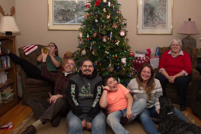 On Christmas day the Oakville contingent got to sleep in, and Adam arrived after noon before we had even opened stockings. Victoria and Travis were doing the rounds of her family in Kitchener. For dinner, Carolyn brought Gloria, Courtney and Nicolas, and Rob and Chloe filled out the table to ten which is about as full as it can get. I didn’t get any photos on Christmas Day – there were more important things to do! Besides, I was still traumatized from the annual exercise of trying to find a combination of photo equipment which would work with a remote clicker, and ended up with the old “press the button and try to run back, sit and smile in ten seconds” routine, which at least gets everyone else laughing at my efforts.