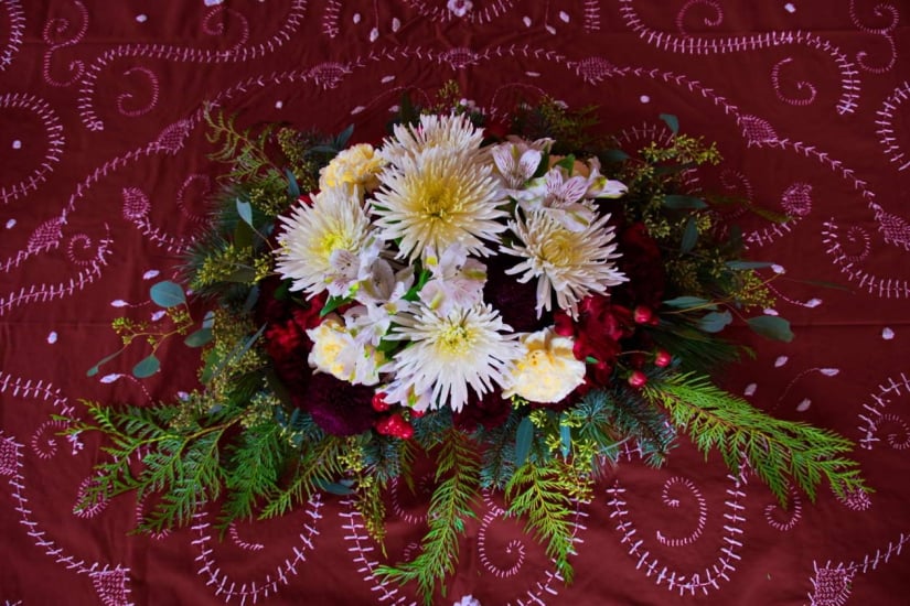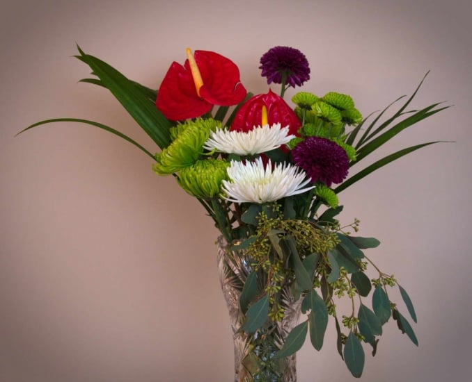Anna made sure the floral department where she works had a profitable year by buying enough flowers and greenery to decorate several Christmas gatherings, and designed and built a centre piece that was Christmassy, elegant and low enough for everyone to see everyone else.