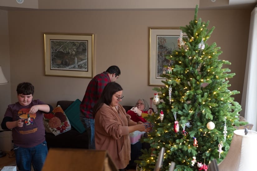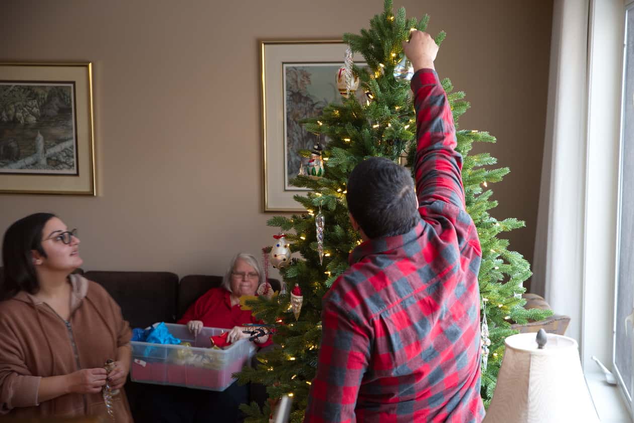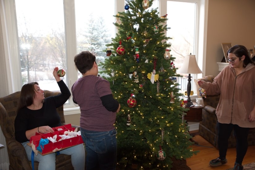 In early December, Victoria, Adam and Travis came over to help Mary-Jo and Anna make cookies and to decorate our Christmas tree. My job was to stay out of the way and take an occasional photo. I did pretend to put an ornament on the tree so Mary-Jo could take my photo.