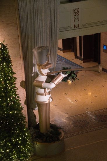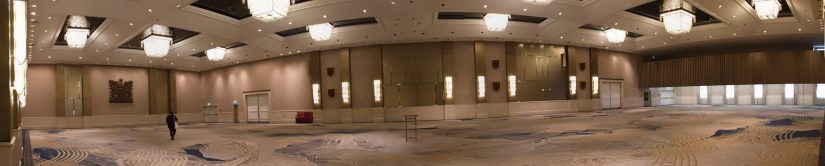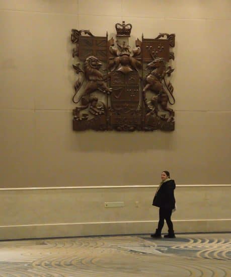 Anna likes to plan a series of grand meals or excursions each December. This year she wanted a fancy tea in a posh Toronto hotel, but couldn’t get a reservation. Abandoning the “tea” part, she organised a lunch at the Royal York hotel and treated her old Dad – presumably to avoid sitting down by herself! After lunch (which I never photographed, and Anna never sent me her photos) we explored the hotel’s public areas and found the convention floor which was gigantic and empty. I’ve never seen such an expanse of carpet. Naturally Anna had to have a closer look!