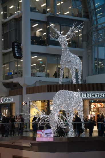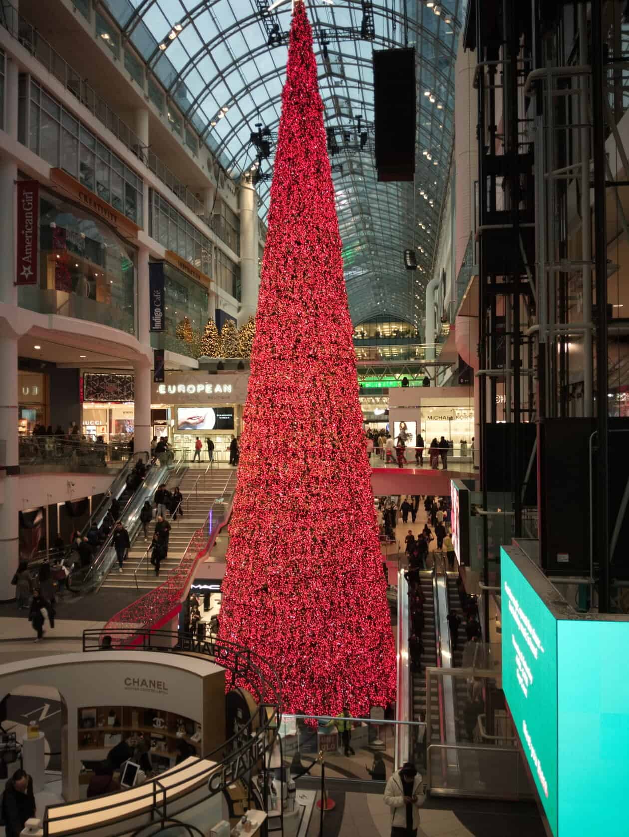 Then inside the Eaton Centre where the “tree” changed colours and even did a light show. By this time we were pretty tired so we ubered back to Union station.