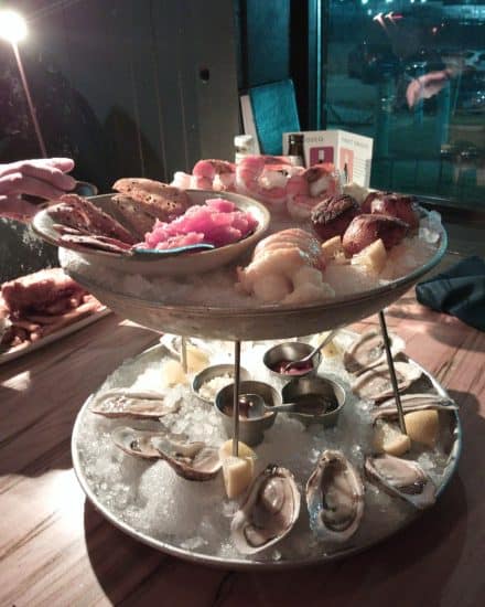 The next Sunday, the 21st., we met Adam halfway for a birthday dinner for Anna at Jakes in Burlington. this is the seafood tower that Anna attempted to eat. We helped by sampling scallops, tuna and shrimp but our own plates were already quite full. There were still some giant shrimps for the doggie basket to take home.