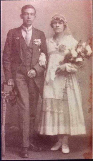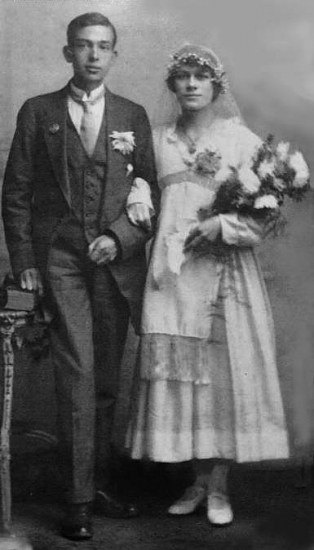 Mary-Jo is still doing genealogical magic and came across a descendant of one of Dad’s older brothers. He had a photo that he copied for Mary-Jo, which I cleaned up a bit in Photoshop. Meet my uncle James and his bride Elsie on their wedding day in 1919. He was 24 at the time. Here’s the original scan, and a cleaned-up version. Plus a picture of my Dad, for comparison. Mary-Jo says this is the first picture of someone in my family that looks like me. I suppose I really should scan some of the photos of me while I can still find them!