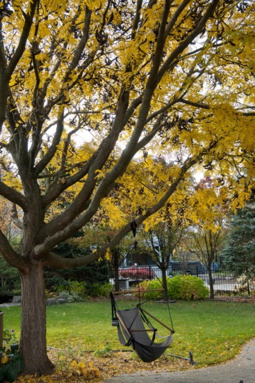 I left the lilacs with some straggly bits at the top so it had something with leaves left to feed the branches I wanted to keep. The idea was to let them fill in near the bottom, so next Spring I can get it to a better shape. I think that worked – have to see what I get next year. The smoke bush surprized us by doubling in height in one season – I’m going to have a serious discussion with it once the leaves come off and I can see the structure. Meanwhile the locust “rewarded” us with a bumper crop of seed pods, which are only just beginning to fall. I suspect I’ll be picking these up all winter!