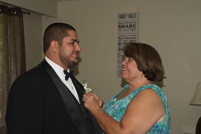 But we got there, and the wedding went well. I can’t say I noticed very much, as I was now in a state of fluster-frenzy. I didn’t get a picture of Travis coming up the aisle (thank you Tom!) and forgot to re-set my camera for the bright sunlight outside. Adam appeared to take it all in his stride, to his credit, although his nice boutonniere disappeared soon after. We never did find it.