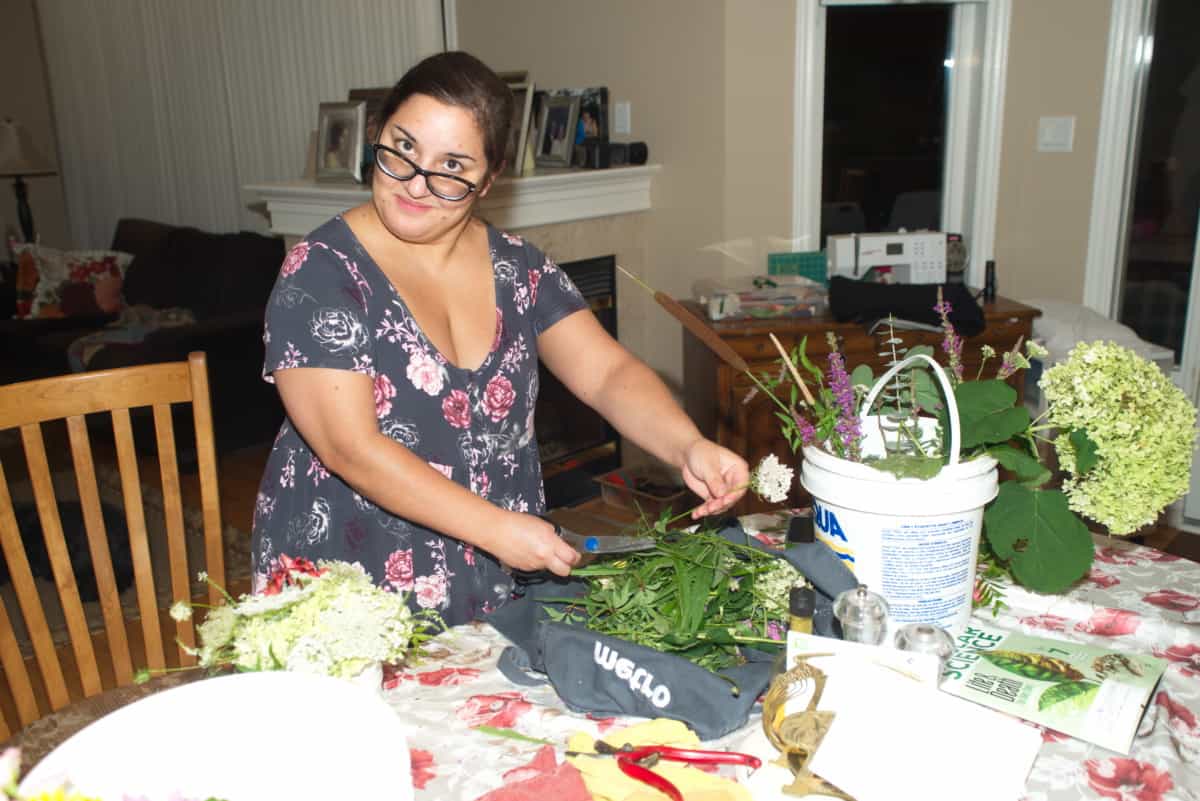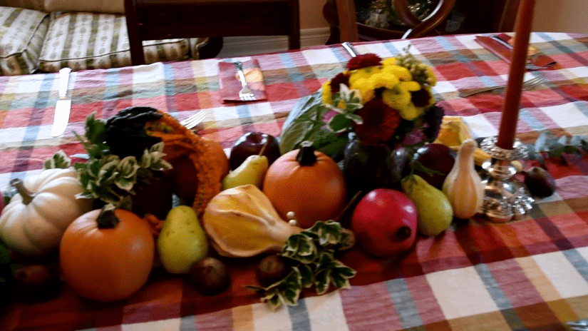 Anna has transitioned to working exclusively in the Floral department at our local Metro, where she is far happier than working on a cash register. For a while in Summer she would come home laden with flowers and practice making arrangements. To fill them out, she would collect flowers and any other interesting plant life from our garden and around our neighbourhood, and then have a great time making and re-making arrangements. She and I had several conversations regarding the relative merits of leaving a flower in the garden versus harvesting it! For Thanksgiving, Anna did all the table decorations.