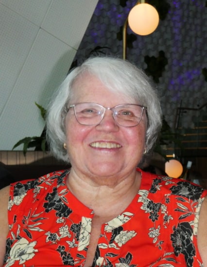 We also had lots of time to look around the cruise dock area and catch some of the little runabouts pottering around. And (on out way out) to wonder if the gentleman with the Celebrity flag also has a bunch of other flags that come out for other ships! That’s Mary-Jo at dinner that night.
