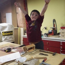 Grandpa finds out that you never leave a curious five-year-old with nothing to do and too much wood filler to play with. An outtake from the “dog house” video: